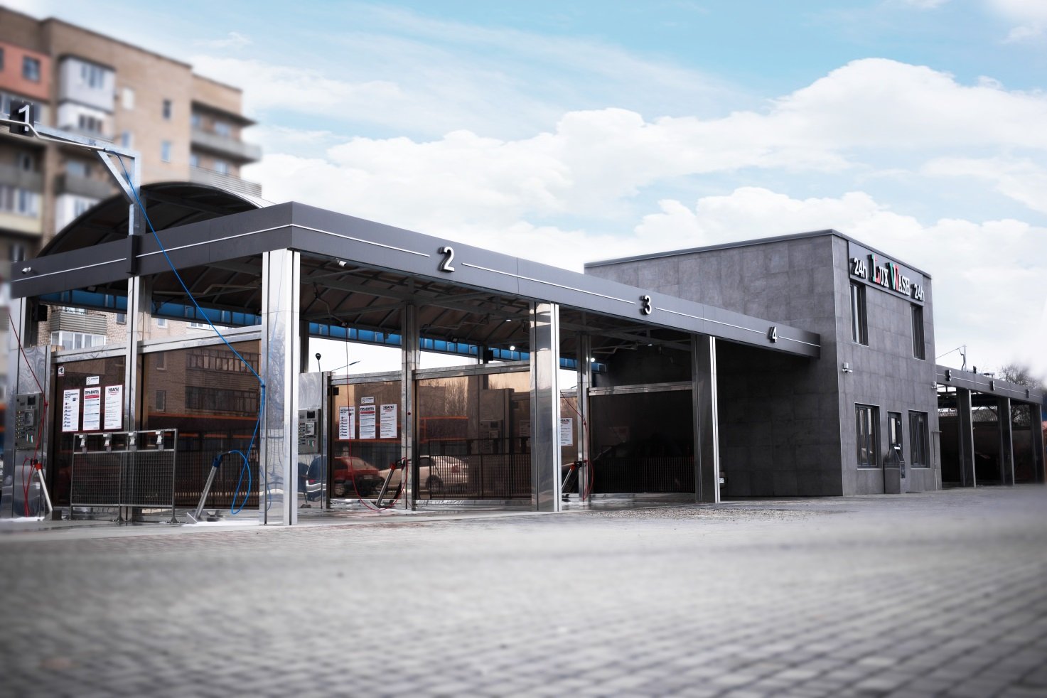 Индивидуальный дизайн фасада мойки самообслуживания «LuxWash»